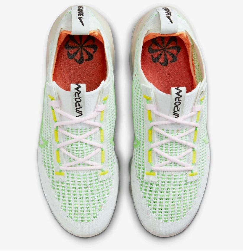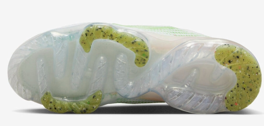 Looking through this Nike Air VaporMax 2021, it features Flyknit on the upper while it has the traditional lacing system. Then, “Fee Love” is printed on the heel tabs and the “Move to Zero” logo lands on the insoles. Other details include recycled Nike Grind materials in the VaporMax outsole.