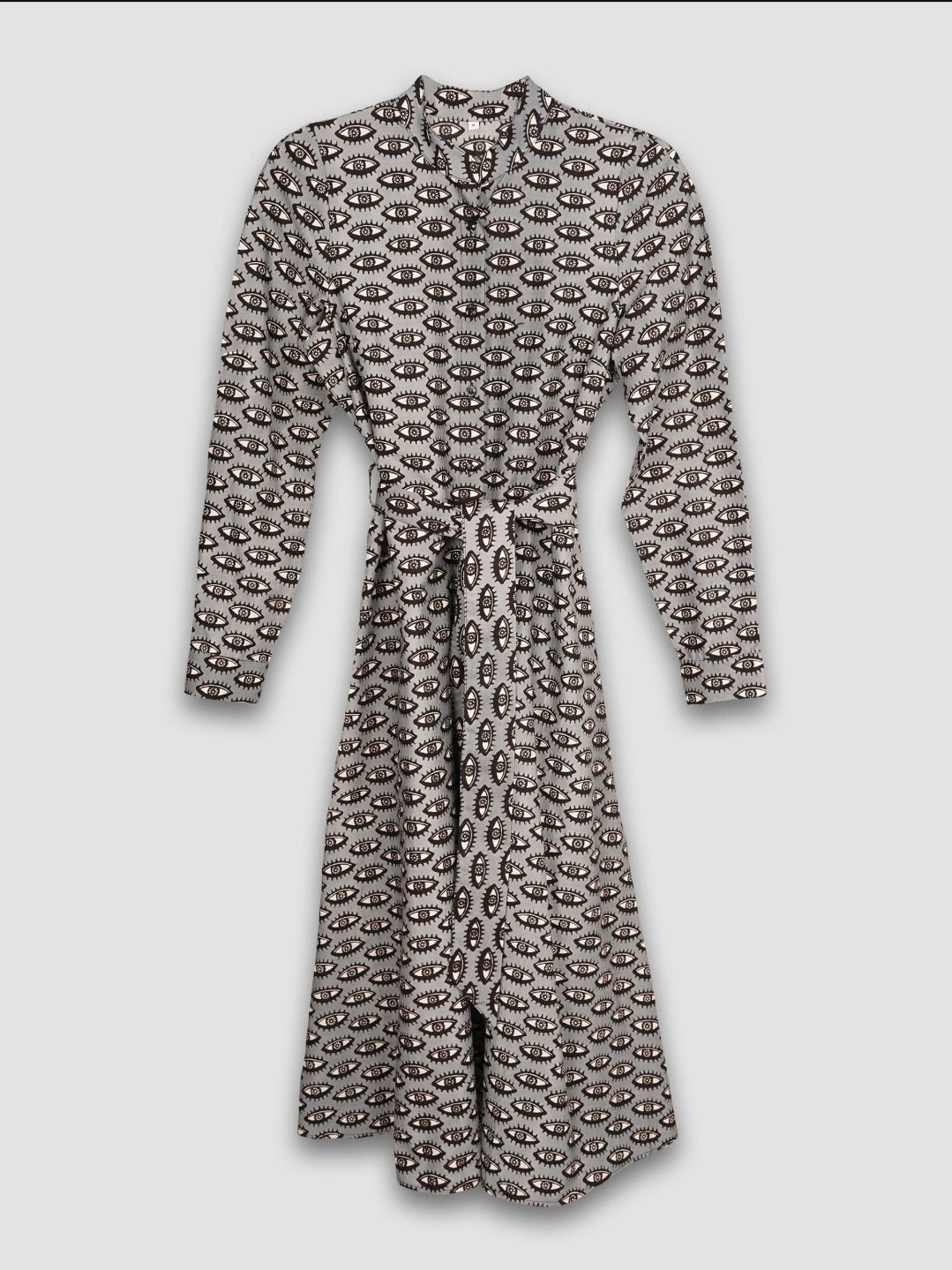 – Robe chemise longue ajustable avec ceinture et passants à la taille