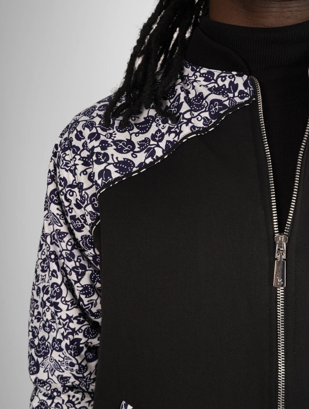 Ce bomber rembourré est confectionné en wax authentique, produit en Côte d’Ivoire et constitué à 100% de coton.