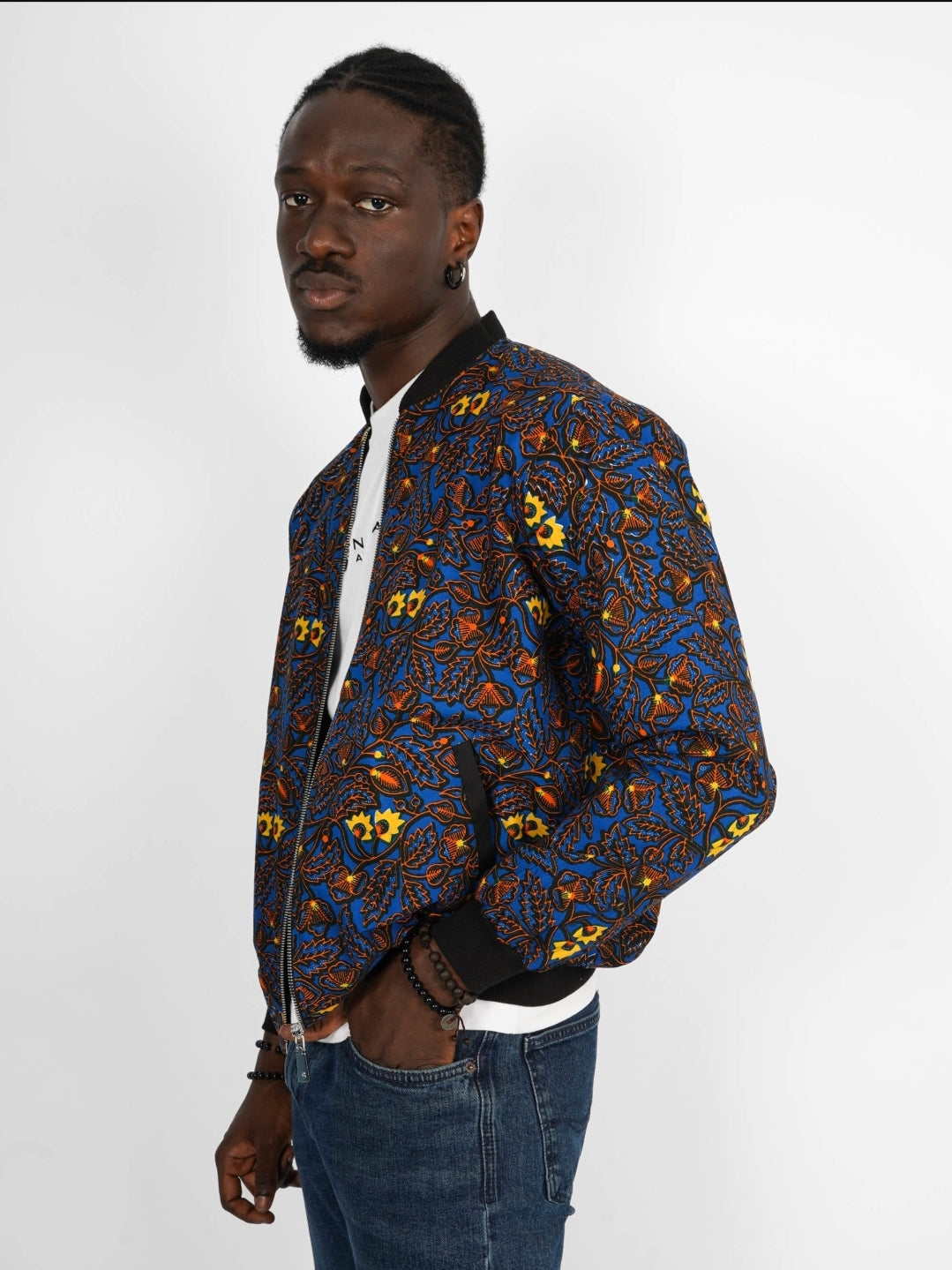Bomber de qualité supérieure en wax 100% coton produit en Côte d’Ivoire.