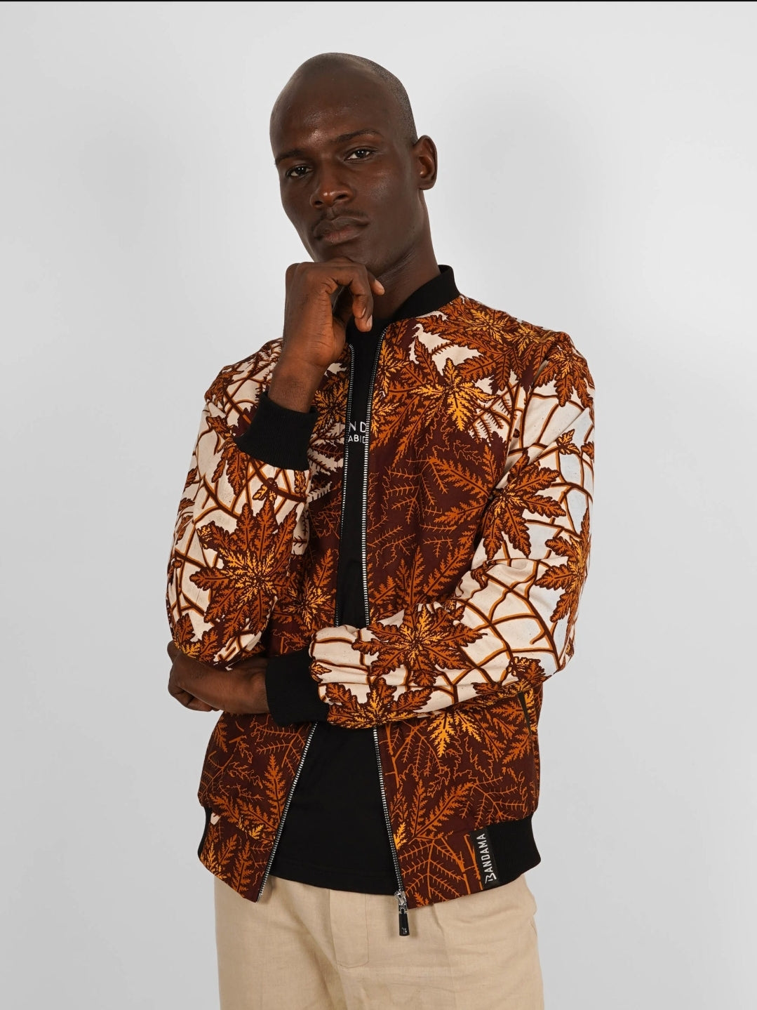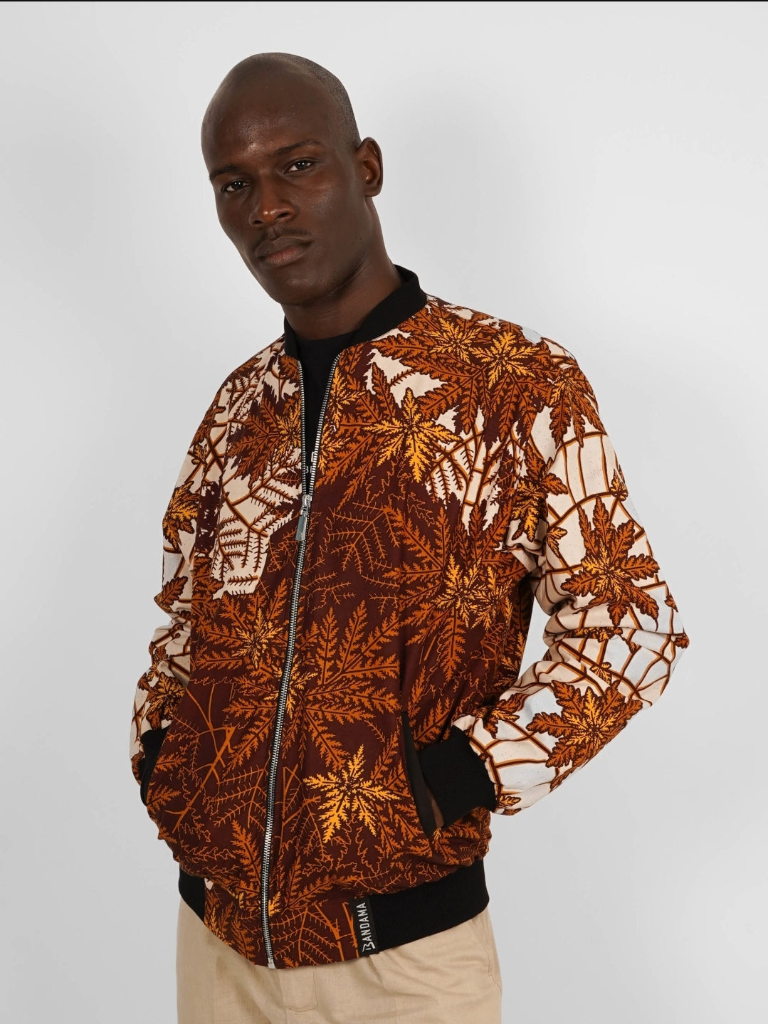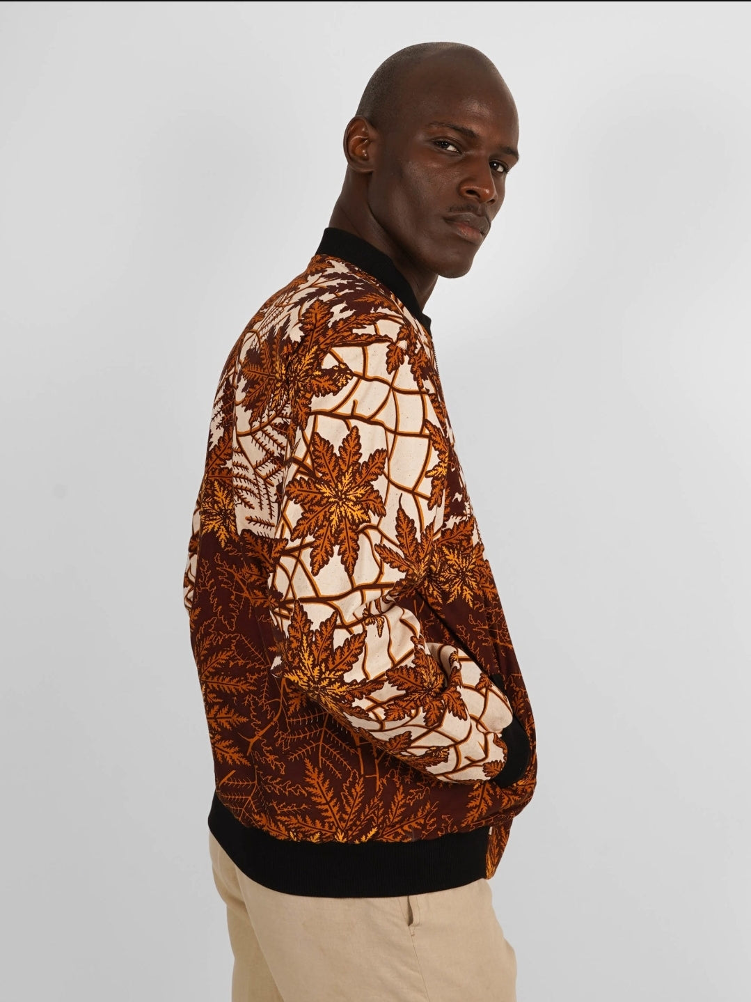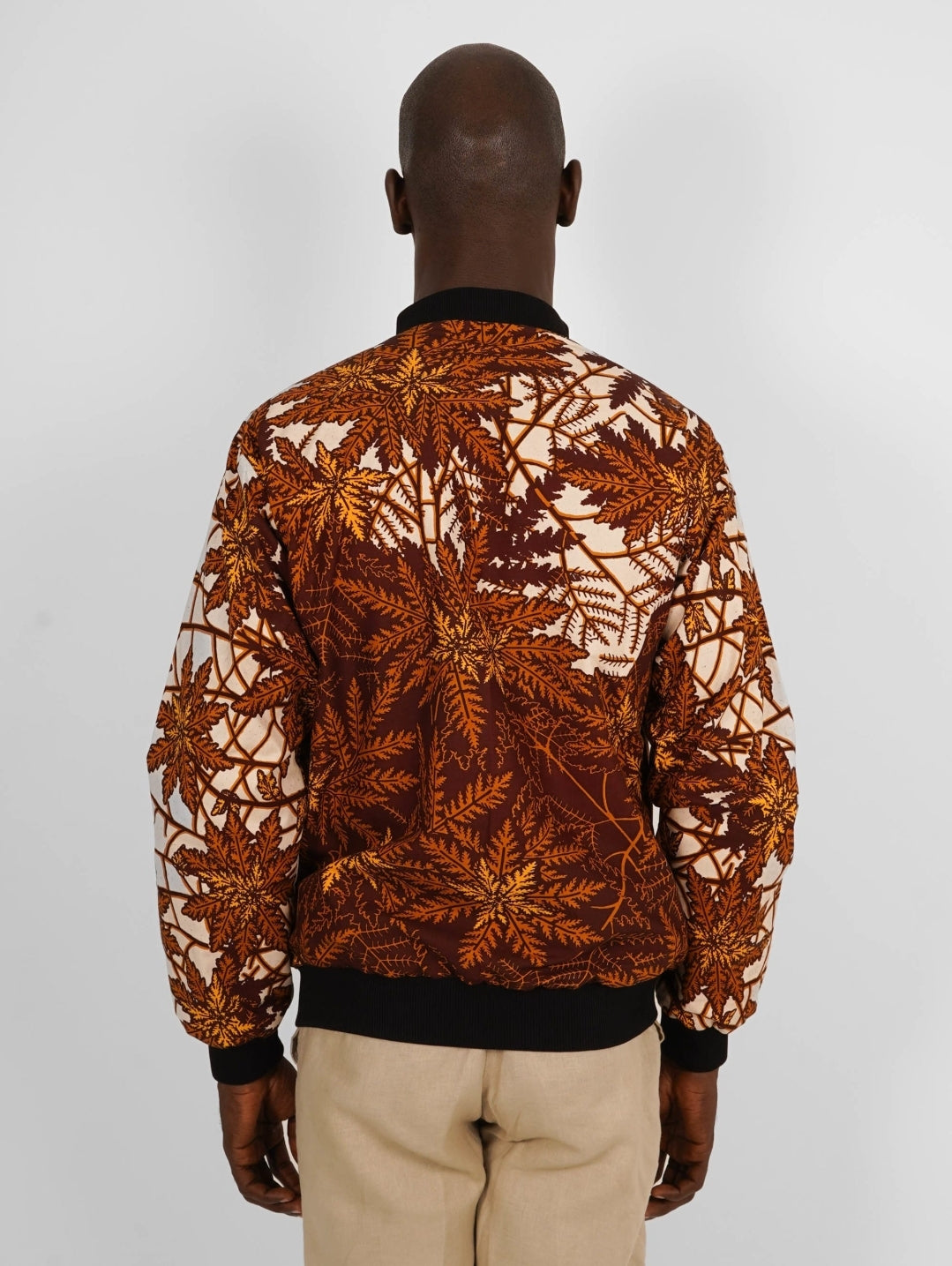 Ce bomber est confectionné en wax authentique, produit en Côte d’Ivoire et constitué à 100% de coton.