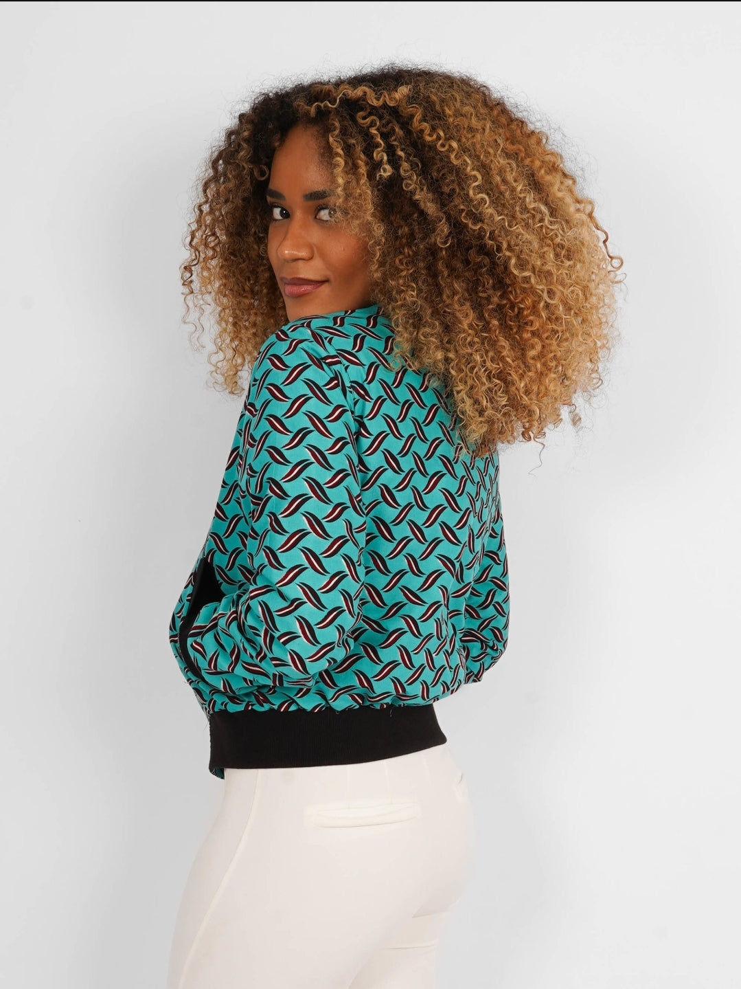 Bomber de qualité supérieure en wax 100% coton produit en Côte d’Ivoire.