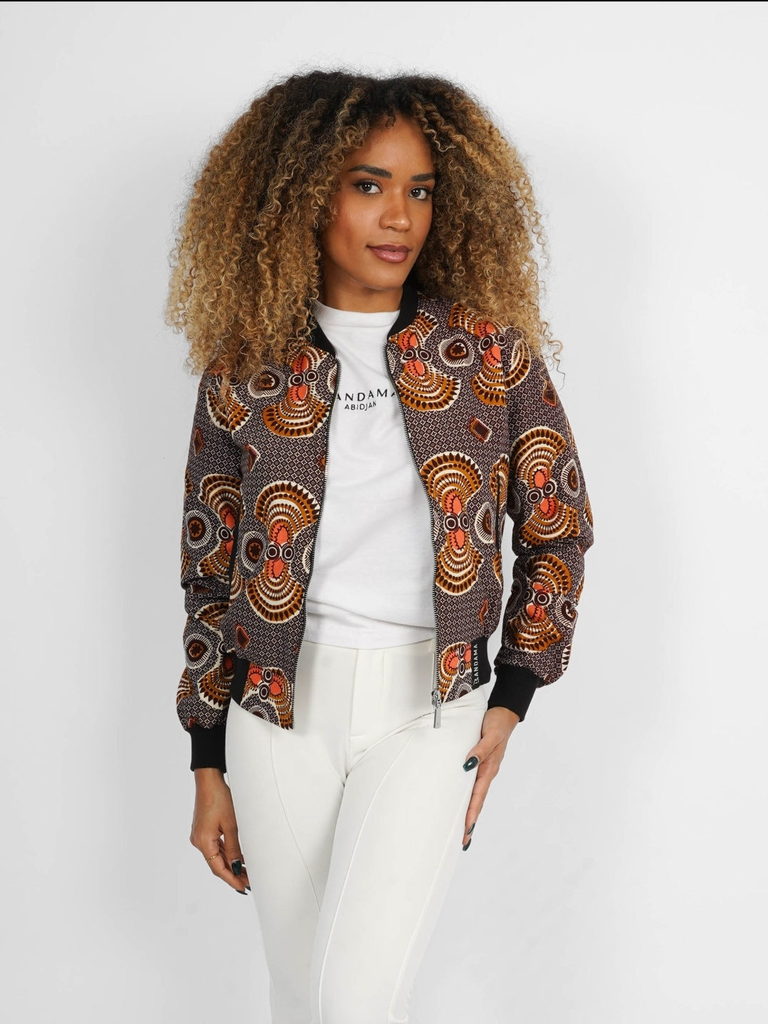 Bomber de qualité supérieure en wax 100% coton produit en Côte d’Ivoire.