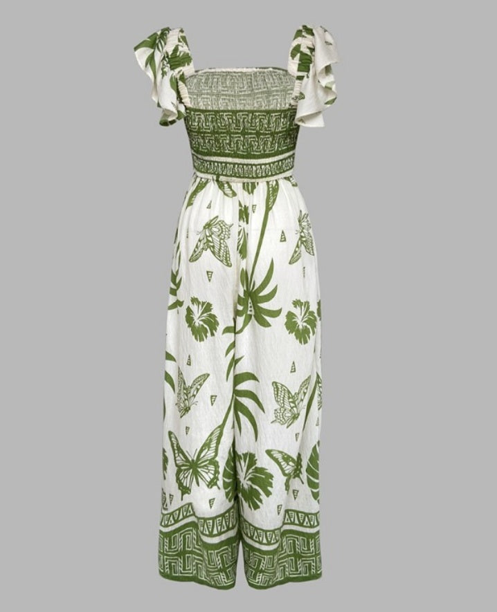 Premièrement : La combinaison à volants à imprimé floral Femme incarne à merveille l’esprit bohème avec une touche de fraîcheur et d’élégance.