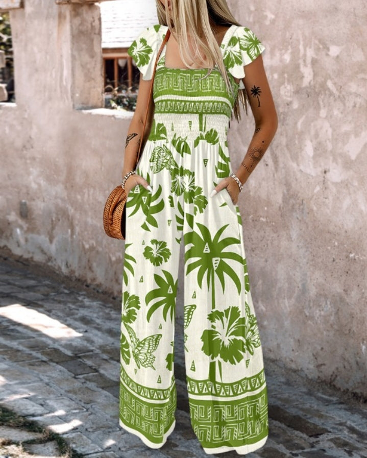 Les Combinaison à volants à imprimé floral et bretelles froncées Femme ajoutent du volume et de la légèreté, tandis que les poches latérales apportent une touche pratique, parfaite pour garder l’essentiel à portée de main.