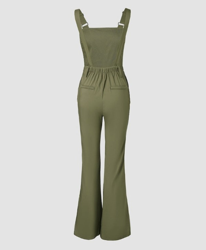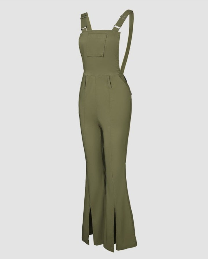 Élégance décontractée : Combinaison à bretelles froncées, ourlet fendu et poches
