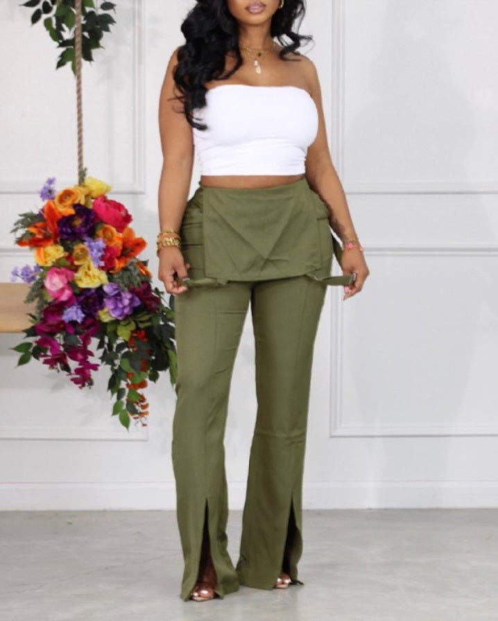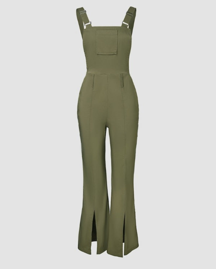 Premièrement : La Combinaison à bretelles froncées au dos avec ourlet fendu et poche femme
