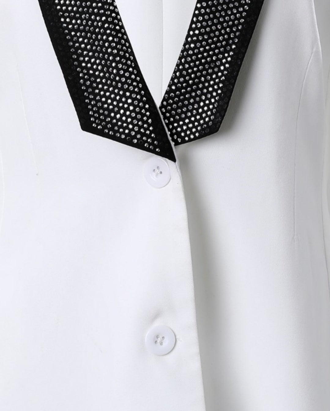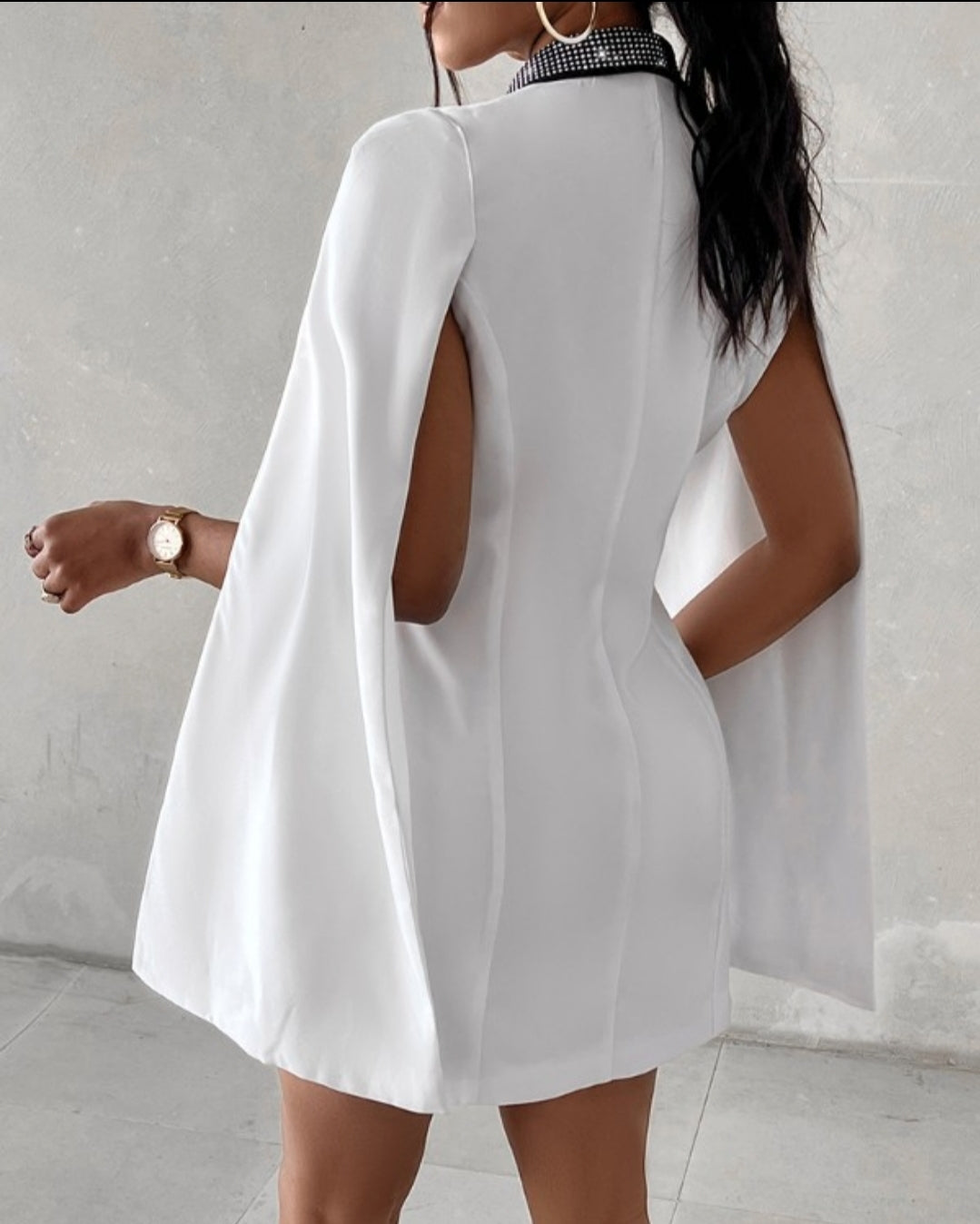 Robe de travail et manteau Blazer en strass avec cape et colorblock
