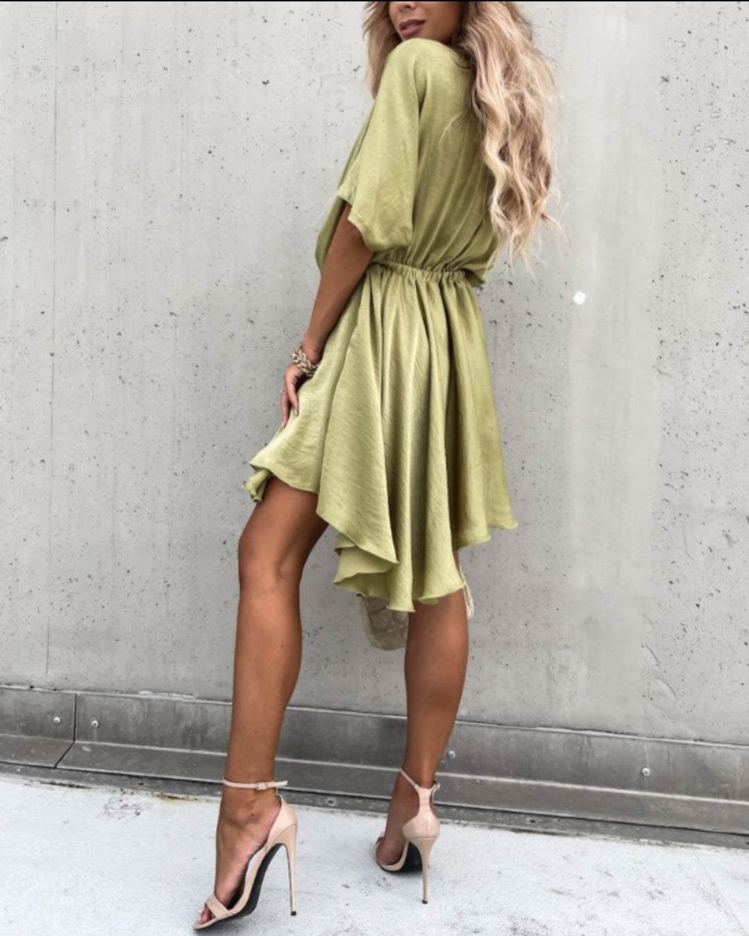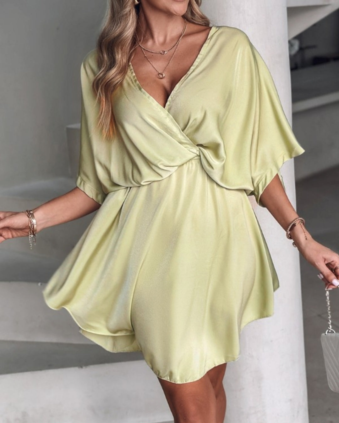 Robe décontractée trapèze fluide à superposition à manche chauve souris