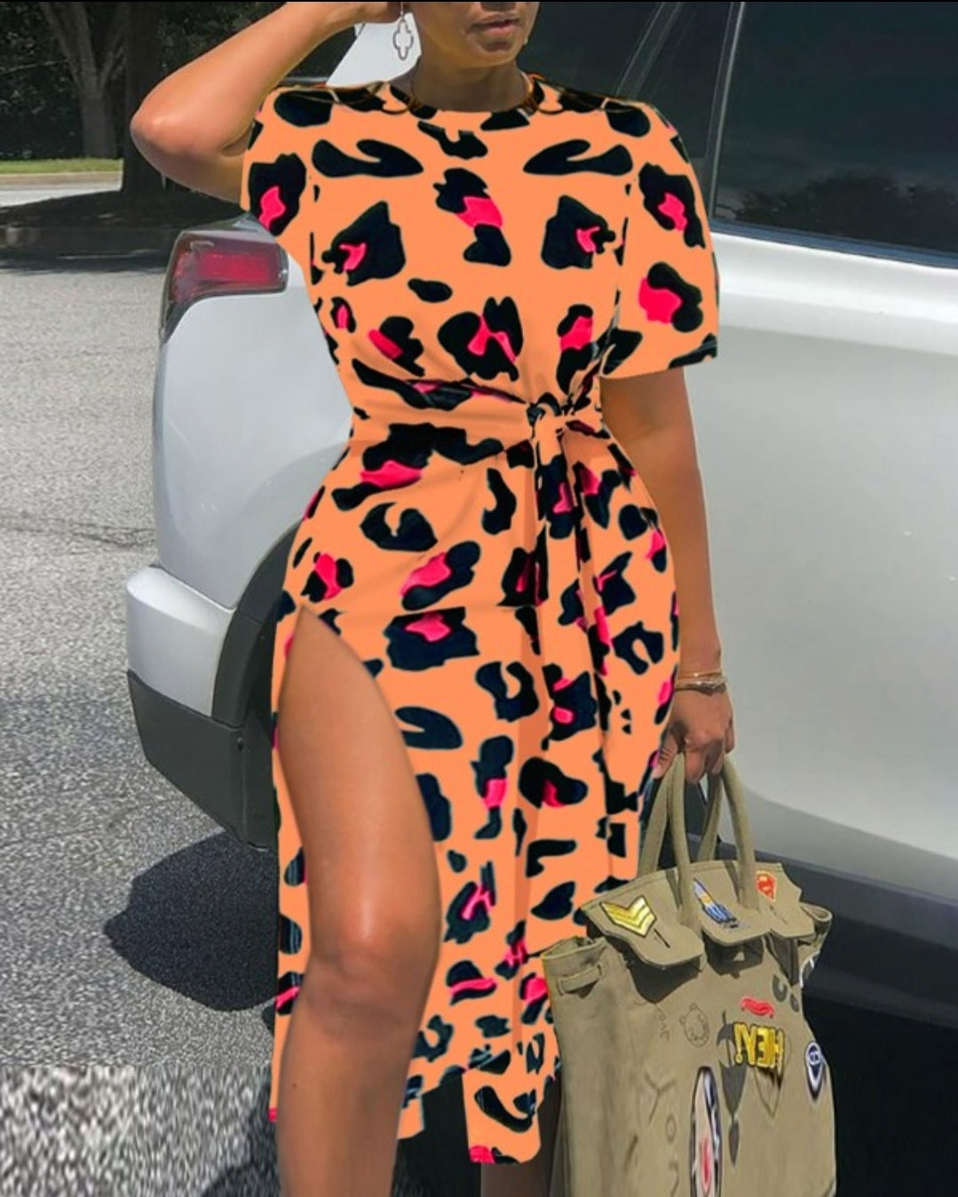 Doté d'un imprimé léopard unique, d'une fente et d'un lien chic à la taille sur le devant, il est fanshionable, sexy et plus élégant.