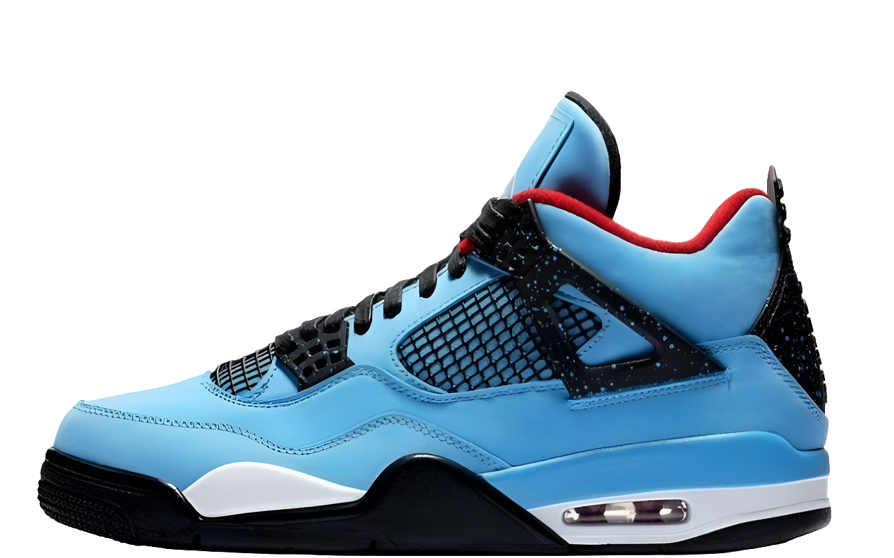 La silhouette est dotée d’un upper en daim bleu, réveillé par une doublure rouge, et finalisé par des accents de noir et une midsole blanche. On retrouve aussi le logo Cactus Jack rouge sur le talon, ainsi qu’un effet speckle bleu sur différentes parties de la chaussure.