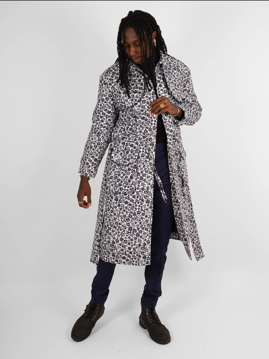Ce trench rembourré est confectionné en wax premium authentique, produit en Côte d’Ivoire et constitué à 100% de coton.