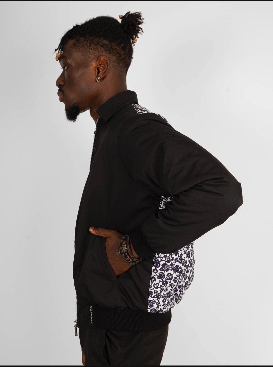 Cette veste rembourrée est confectionnée en wax authentique, produit en Côte d’Ivoire et constitué à 100% de coton.