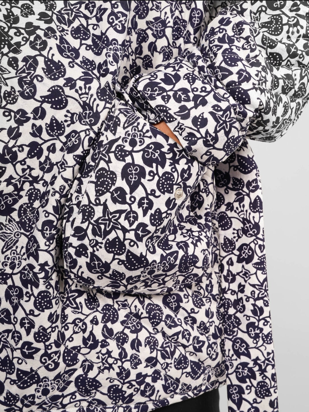 Cette veste matelassée rembourrée est confectionnée en wax premium authentique, produit en Côte d’Ivoire et constitué à 100% de coton.
