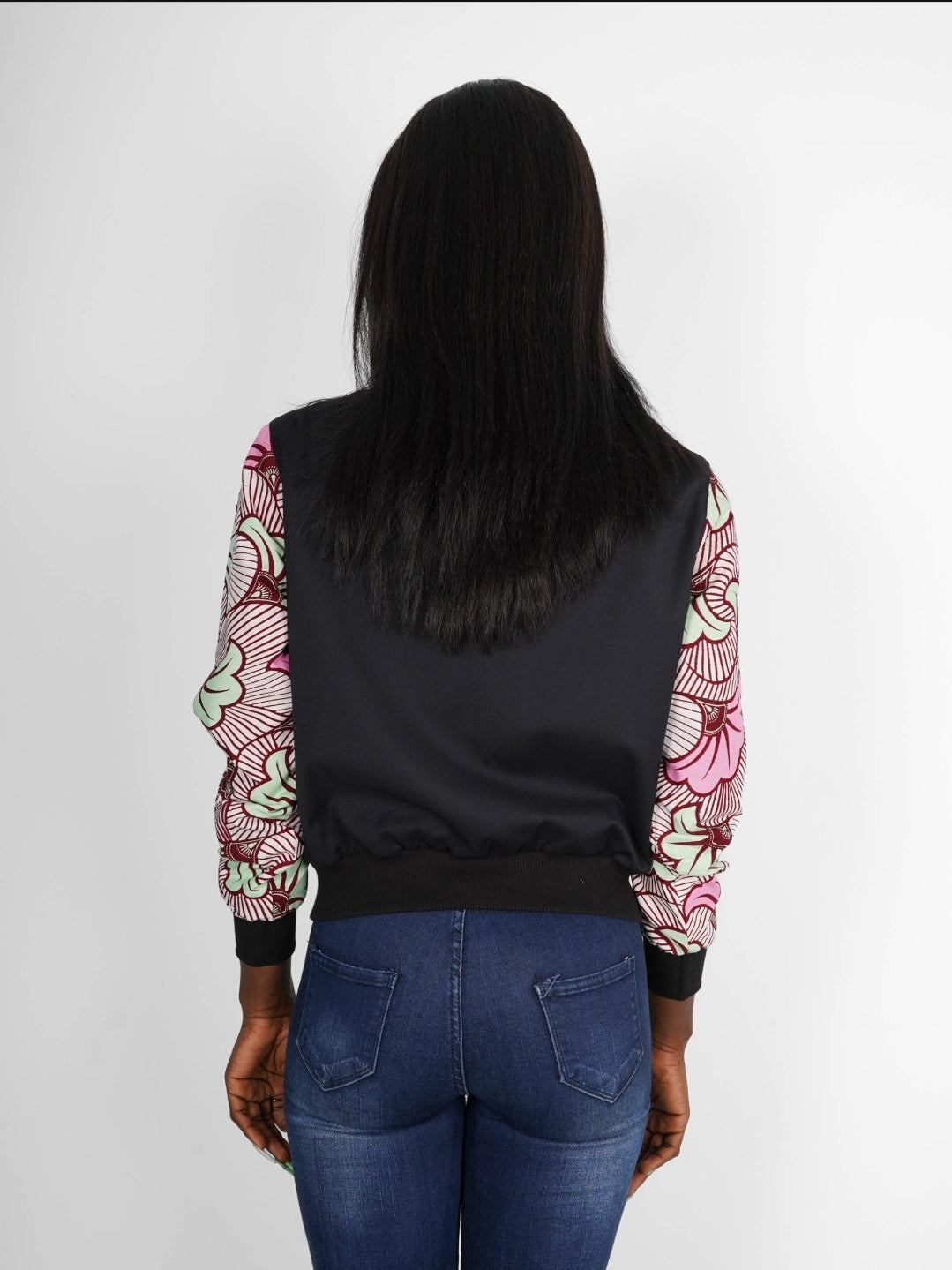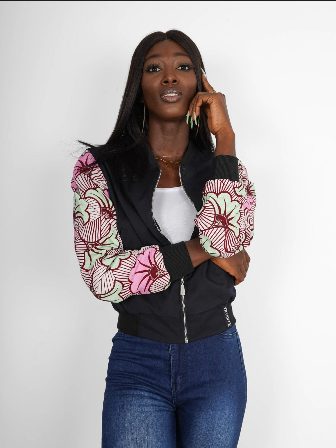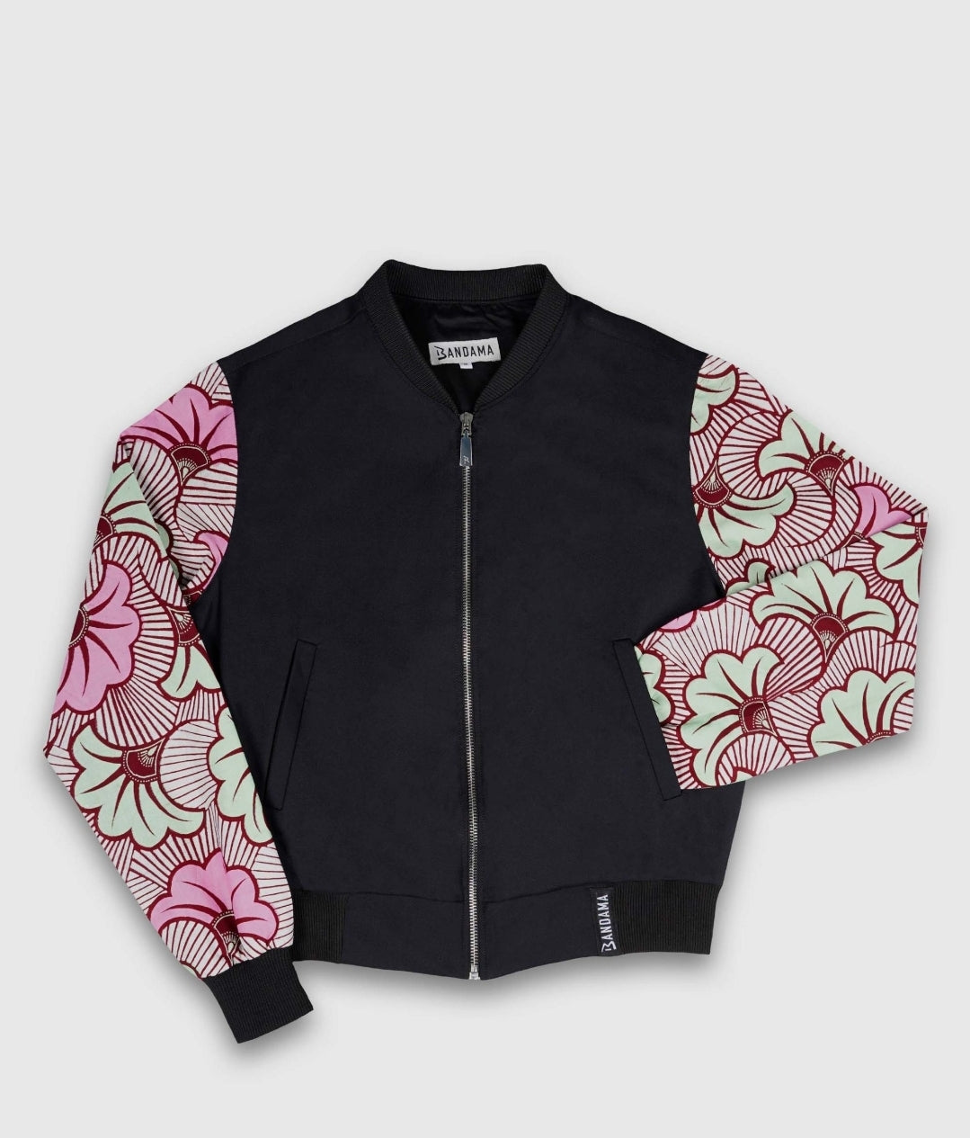 Cette veste est confectionnée en wax authentique, produit en Côte d’Ivoire et constitué à 100% de coton.