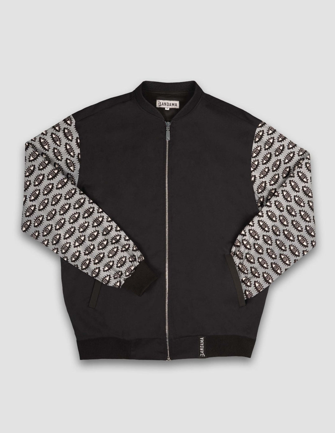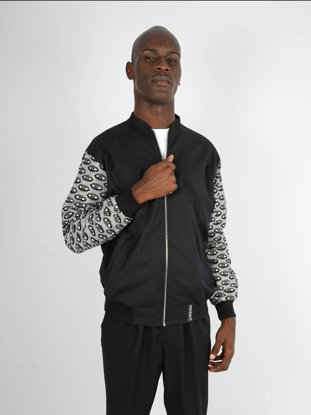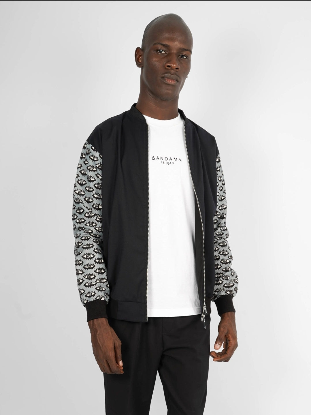 Cette veste est confectionnée en wax authentique, produit en Côte d’Ivoire et constitué à 100% de coton.