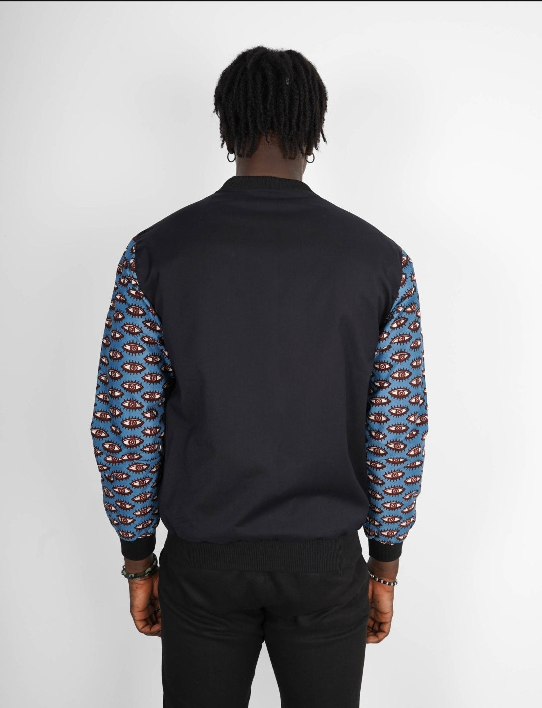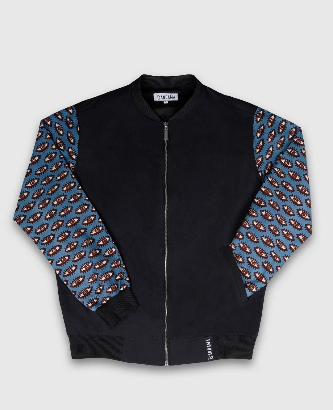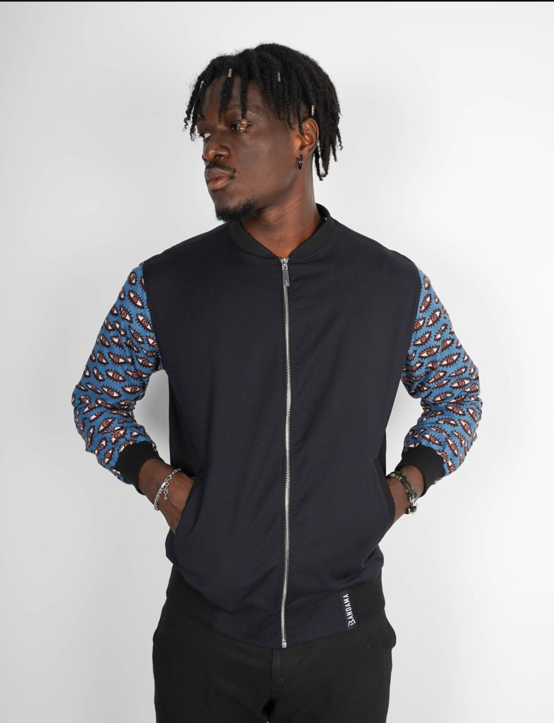 Cette veste est confectionnée en wax authentique, produit en Côte d’Ivoire et constitué à 100% de coton.