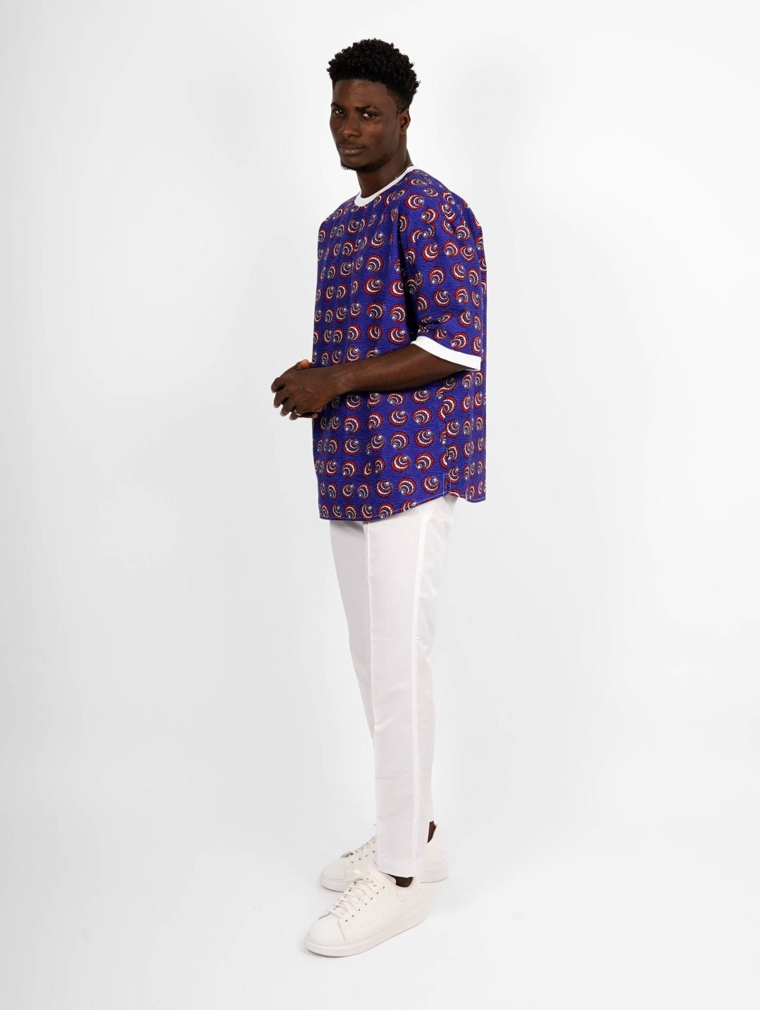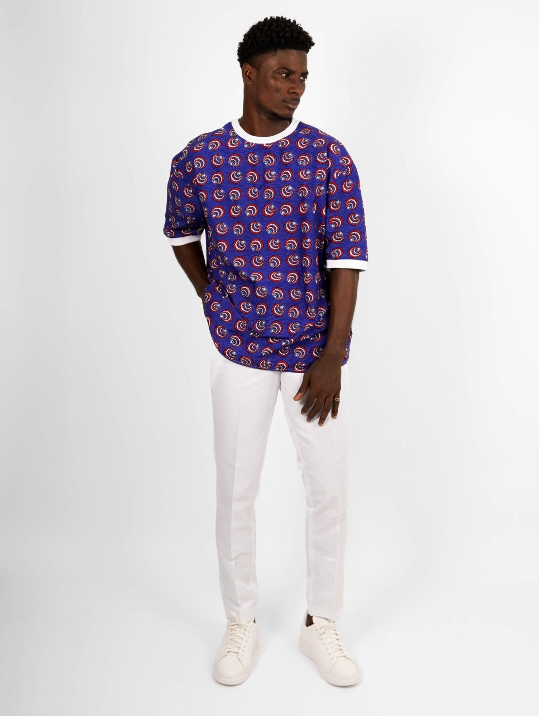 Ce t-shirt oversize est confectionné en wax authentique, produit en Côte d’Ivoire et constitué à 100% de coton.