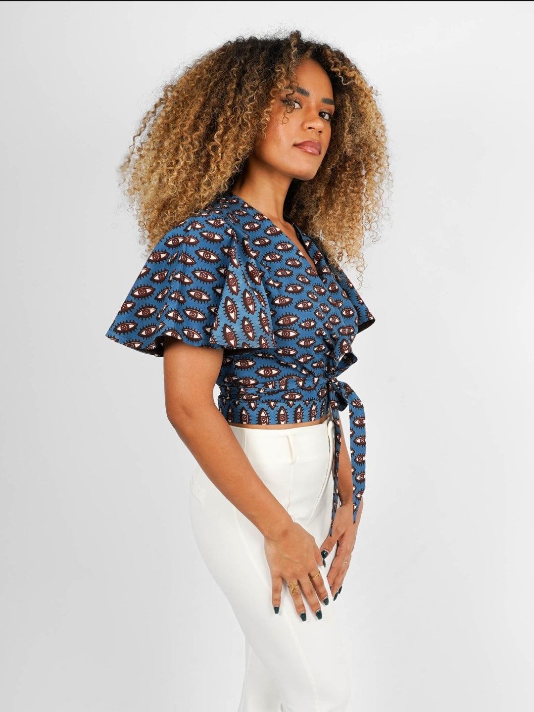 Ce top est confectionné en wax authentique, produit en Côte d’Ivoire et constitué à 100% de coton.