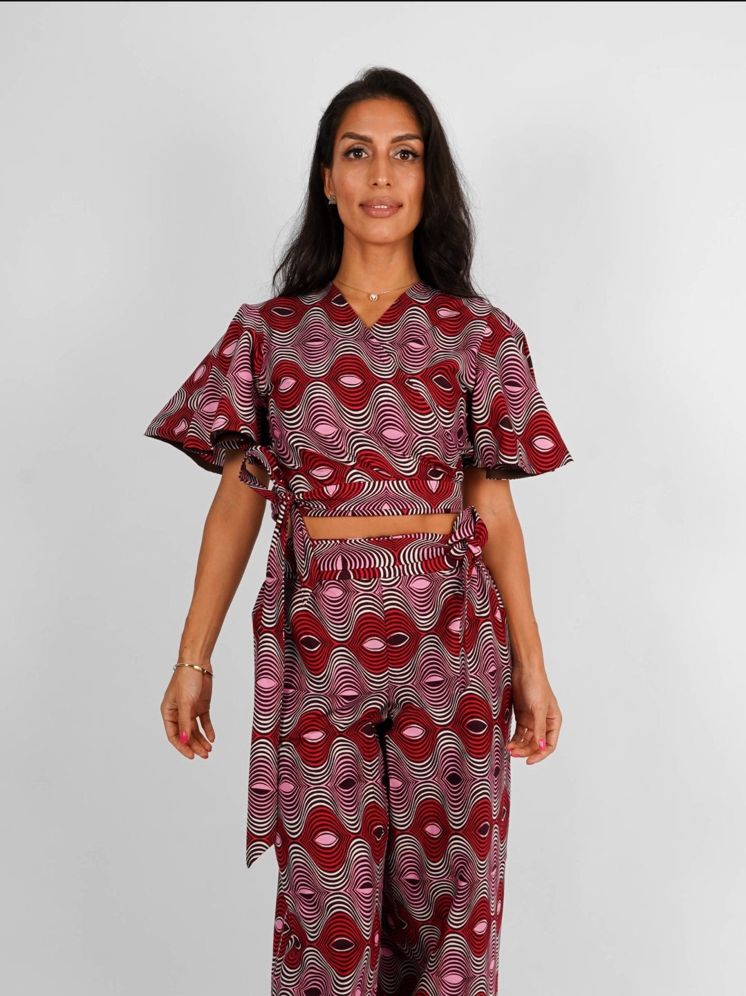 Ce top est confectionné en wax authentique, produit en Côte d’Ivoire et constitué à 100% de coton.