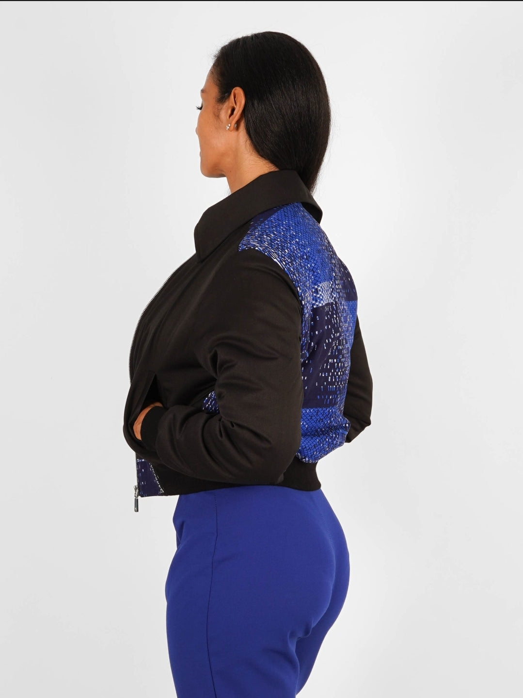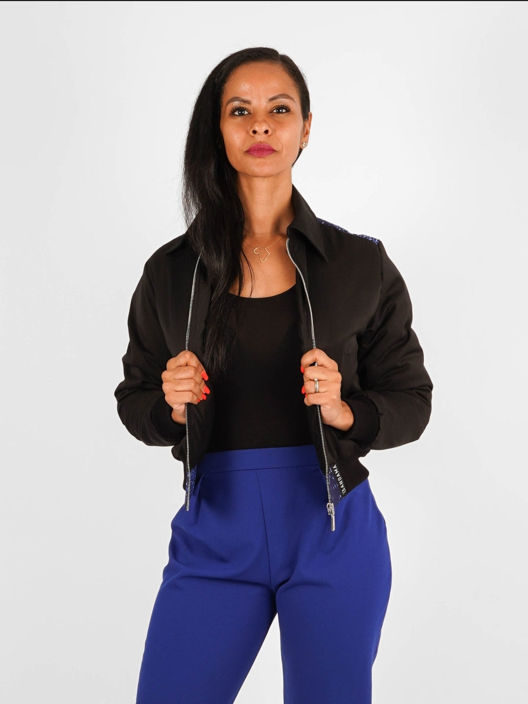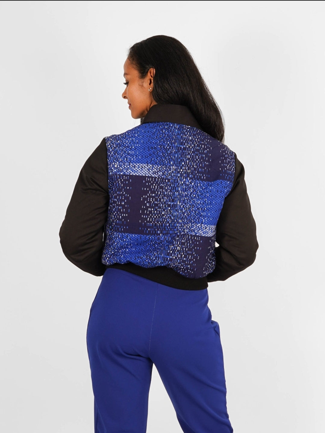 Cette veste rembourrée est confectionnée en wax authentique, produit en Côte d’Ivoire et constitué à 100% de coton.