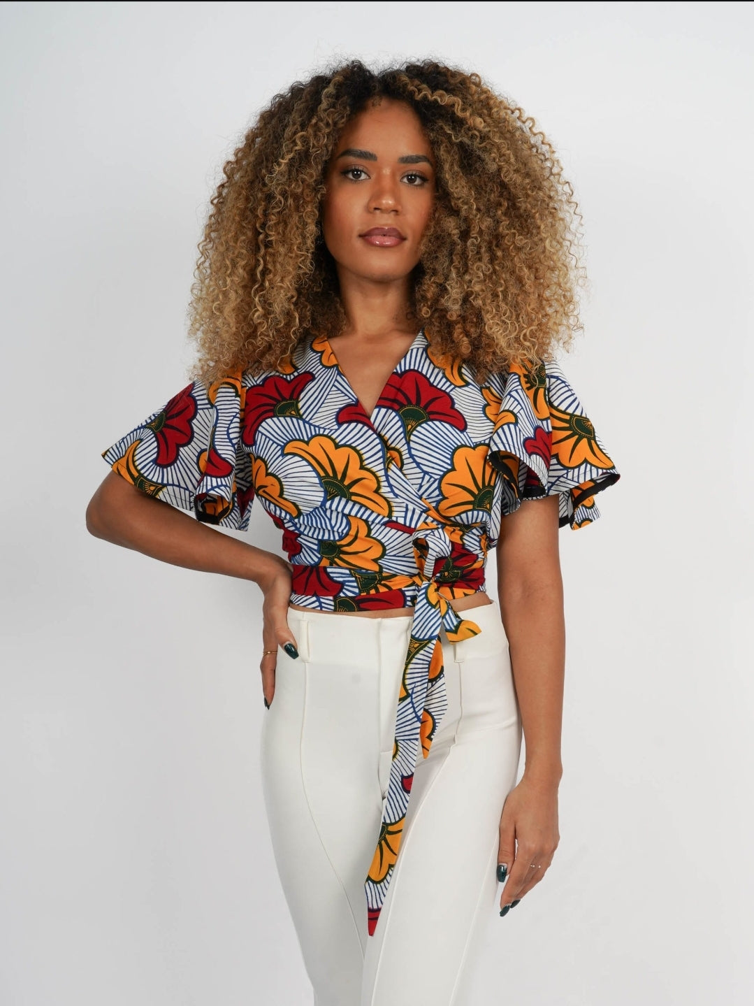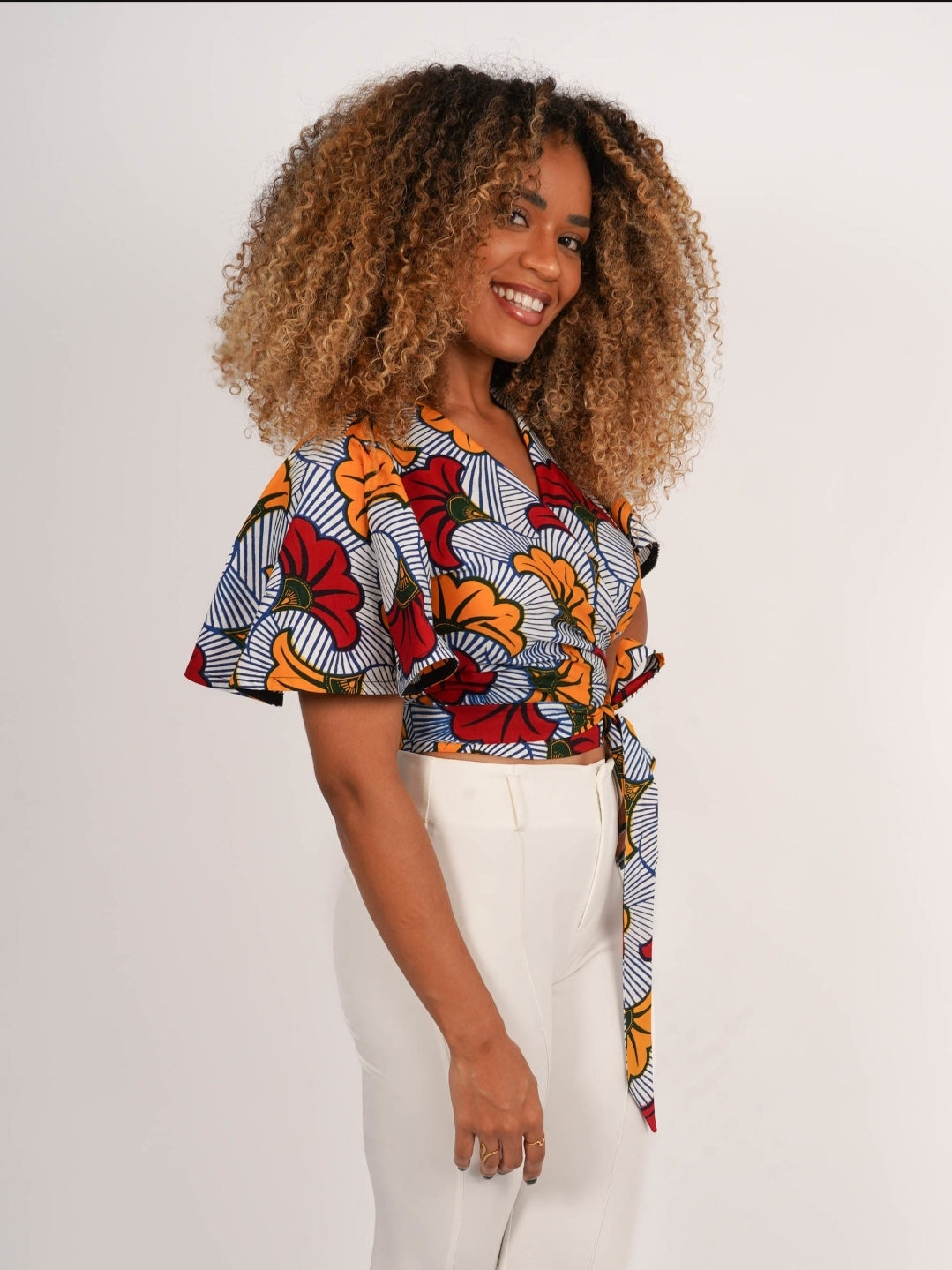 Ce top est confectionné en wax authentique, produit en Côte d’Ivoire et constitué à 100% de coton.