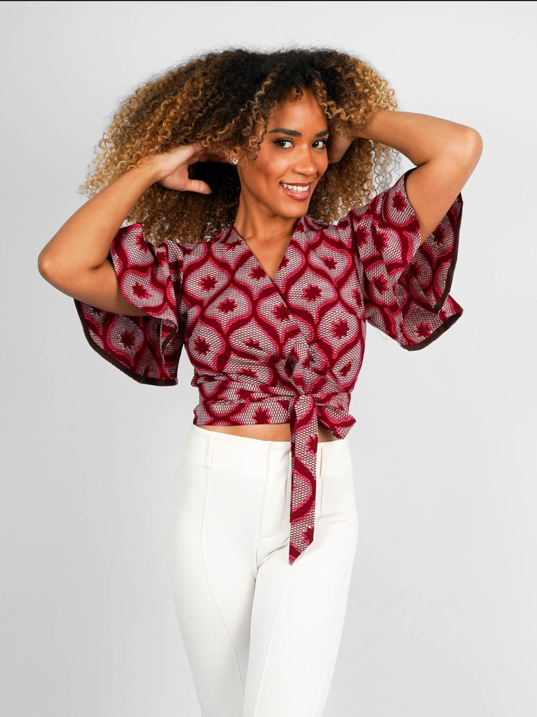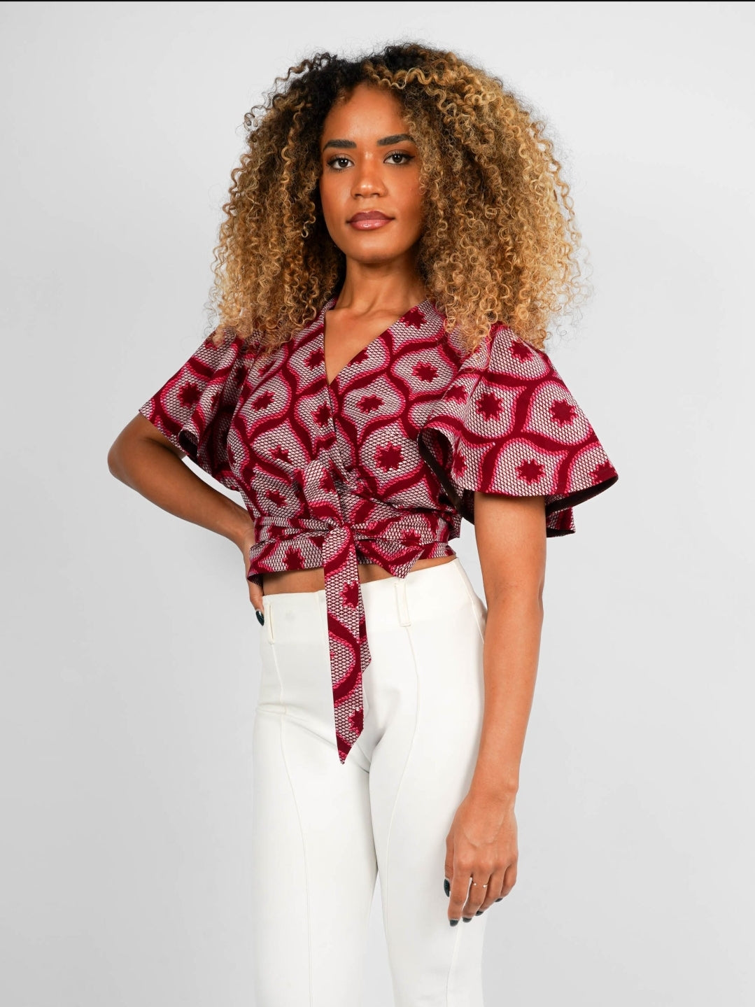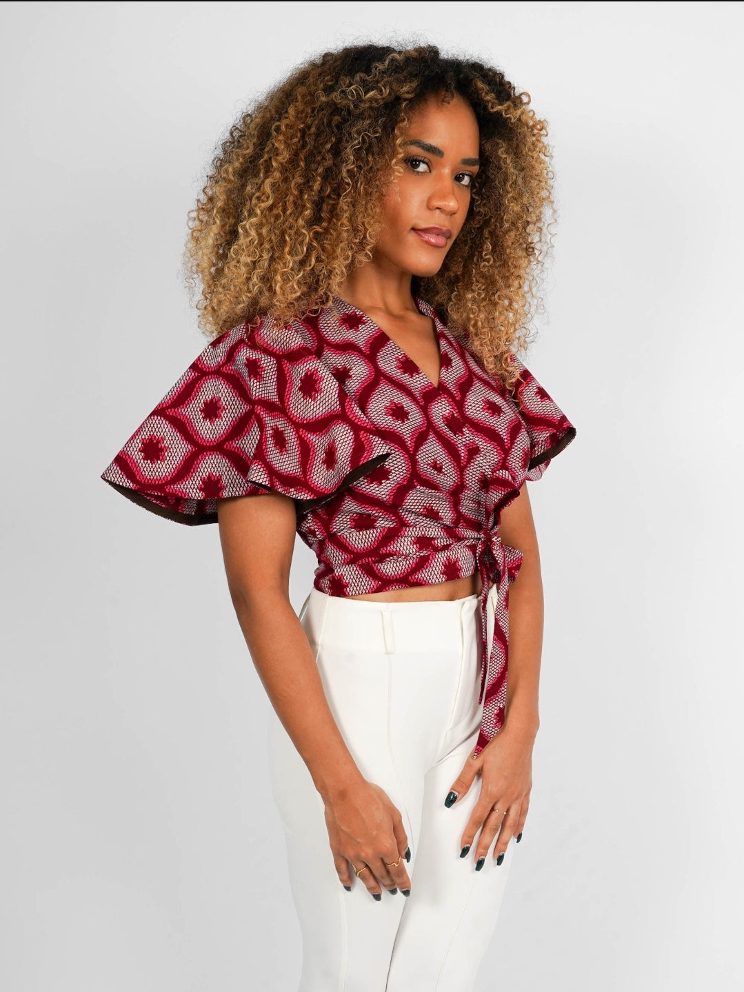 Ce top est confectionné en wax authentique, produit en Côte d’Ivoire et constitué à 100% de coton.