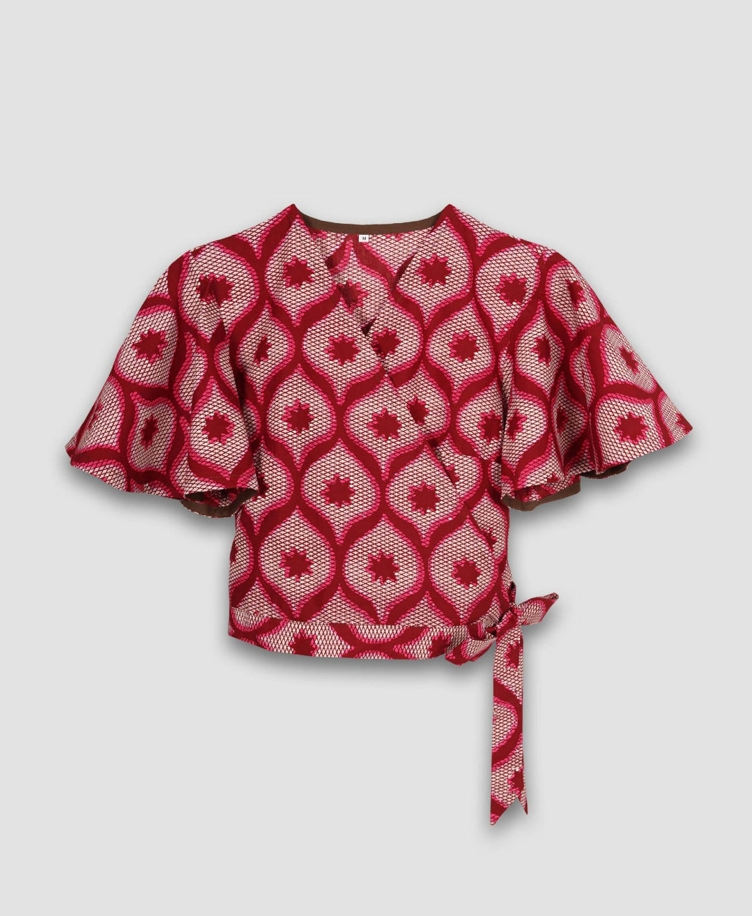 Appréciez notre top cache-cœur avec sa coupe cintrée ajustable à la taille.