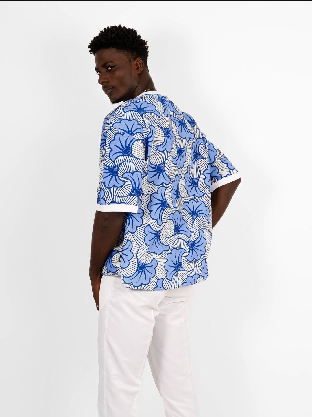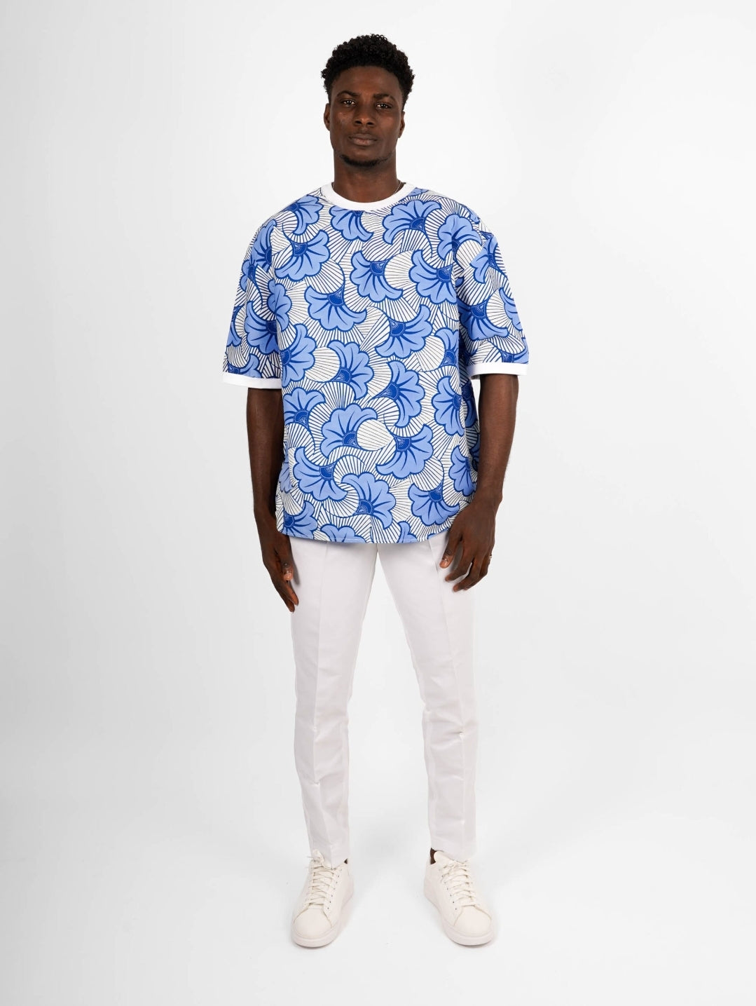 Ce t-shirt oversize est confectionné en wax authentique, produit en Côte d’Ivoire et constitué à 100% de coton.