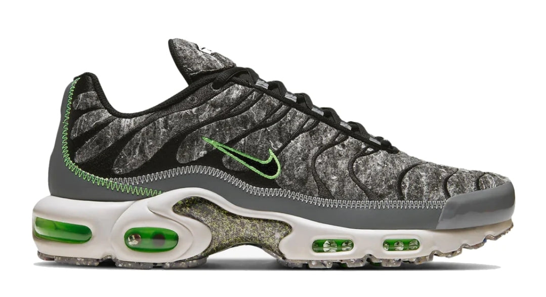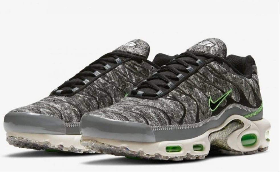 Nike vient de lancer deux nouvelles versions de sa célèbre Air Max Plus, baptisées "Crater", qui se distinguent par leur construction respectueuse de l'environnement. La marque a pris en compte les enjeux écologiques dans le domaine de la chaussure, en proposant des déclinaisons "Crater" fabriquées à partir de matériaux recyclés depuis un certain temps déjà, notamment avec la Air Max 95.
