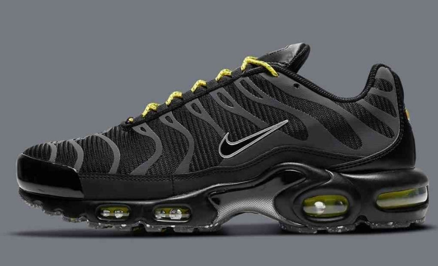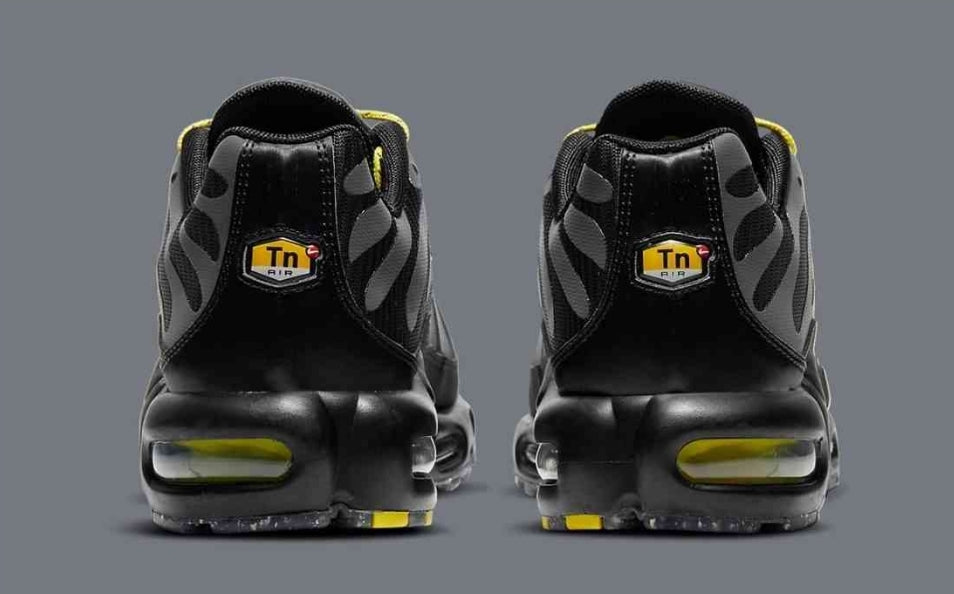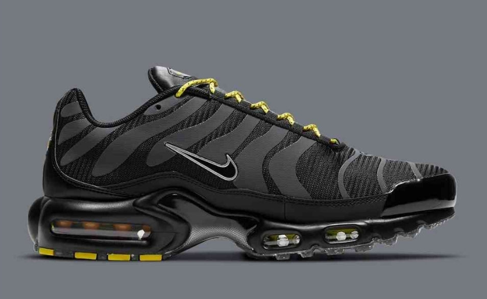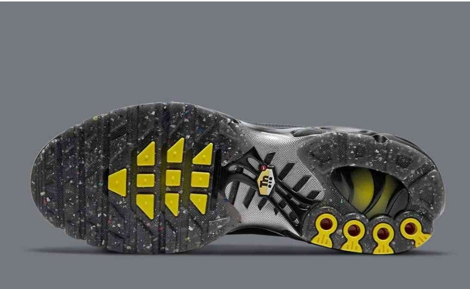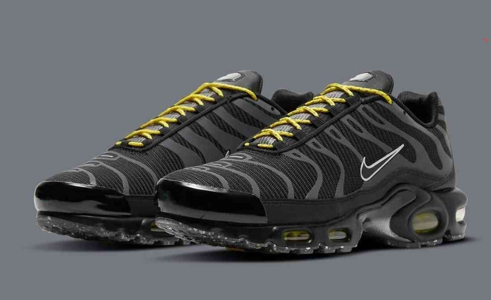 Nike prend l’écologie à coeur et appose de plus en plus de matériaux recyclés sur ses modèles phares. La Air Max Plus est de ceux-là : après un premier pack mêlant une laine réutilisée et à la semelle Crater, la marque de Beaverton en a concocté un nouveau autour de la semelle mouchetée. Des colorways Black et Grey ont filtré, à la tige en maille et aux finitions mates revisitées, respectivement rehaussés d’accents jaunes et rouges.