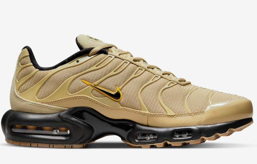 À l’approche de la saison automnale, des déclinaisons de saison commencent à faire surface dont cette nouvelle Nike Air Max Plus Gold Black Gum.