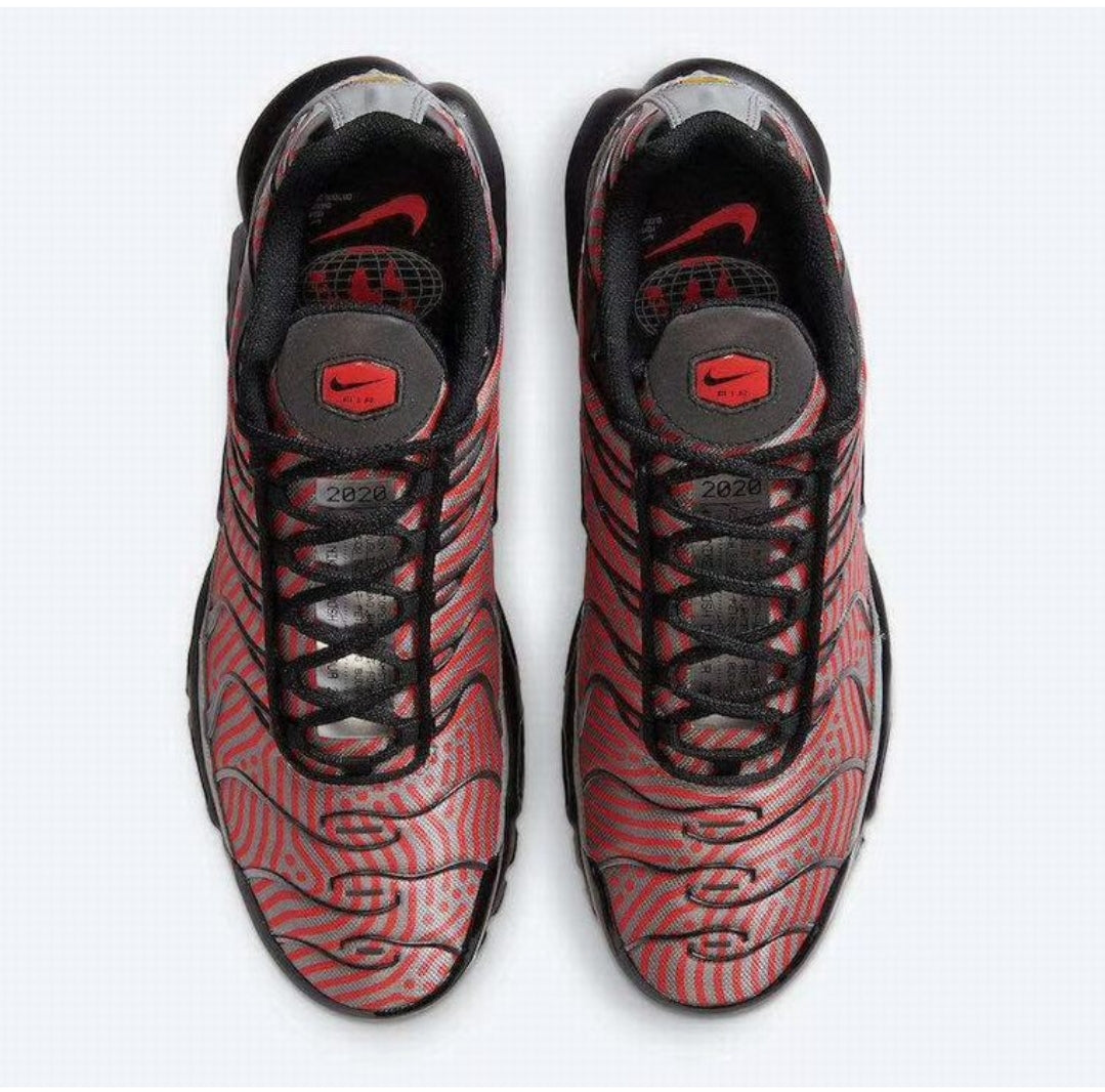 La Nike Air Max Plus est la dernière silhouette à rejoindre la collection "Euro Tour" du Swoosh. Revêtue d'un gris fumé complété par du noir, la Air Max Plus se différencie davantage de ses co-stars "Euro Tour" avec des motifs de lignes rouges qui couvrent l'ensemble de la tige en mesh. Elle présente une liste de villes européennes sur la languette, tout comme une React Element 55 sur le même thème. Sous le pied, les unités Tuned Air et l'outillage qui les accompagne s'adonnent au schéma de couleurs susmentionné, l'écarlate prenant le dessus sur les Airbags du talon et les accents de la semelle extérieure.